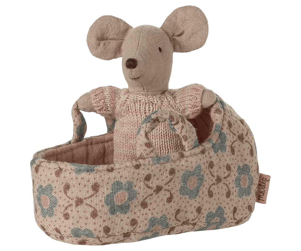 Maileg – Baby Mouse in Carry Cot – Rose