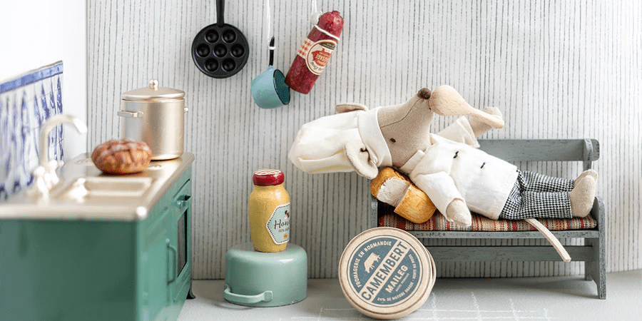 Breng warmte en gezelligheid in de speelkamer met Mum Mouse van Maileg. Deze charmante muis, verkrijgbaar voor €23,95, is precies de juiste maat om te knuffelen en mee te spelen. Ontdek hoe deze kleine vriend het speelplezier van je kind compleet maakt.