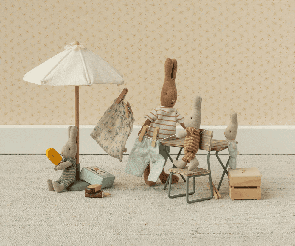 - Perfect voor buiten en binnen: Of je kind nu binnen speelt of buiten in de tuin, de Sunshade Miniature voegt een speels en realistisch detail toe aan elke Maileg setting.