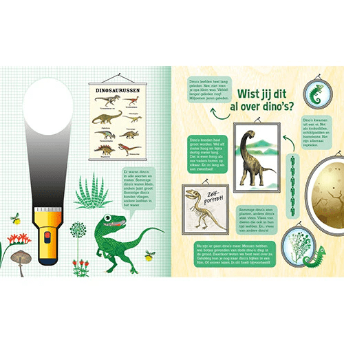 zaklampboek speuren in het dinobos